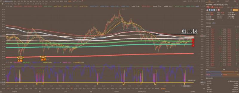 原油76.50和75.10分别做多,止损各70点,止盈各300点;
