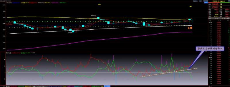 通过对黄金小时图解析得知,黄金从早盘如期继续震荡上行,我们从刚需房的附图可以清楚的看到昨日在下方布林带中轨的支撑位以及下跌的过程中多头主力呈现不断增仓的动作到目前为止已经开始走强说明行情将会继续向上突破,短期我没关注2049和2064的压力即可,操作上我们继续重点逢低做多,具体建议参考早盘建议