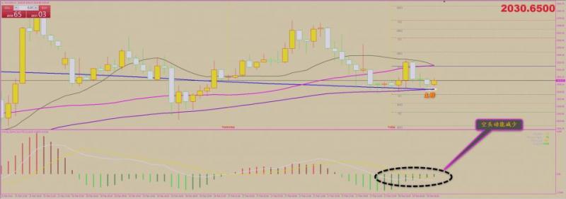 通过对黄金小时图解析得知,黄金从昨日和今日依然是在下方120日均线的支撑位得到了有效性支撑,我们从下方的附图可以清楚地看到MACD的下跌动能柱有所缩短,说明多头主力在下跌调整的过程中有进仓迹象,说明短期将会继续向上反弹,短期我们继续关注2042和2055一线的压制即可,在操作上我们重点逢低做多,具体建议参考早盘策略