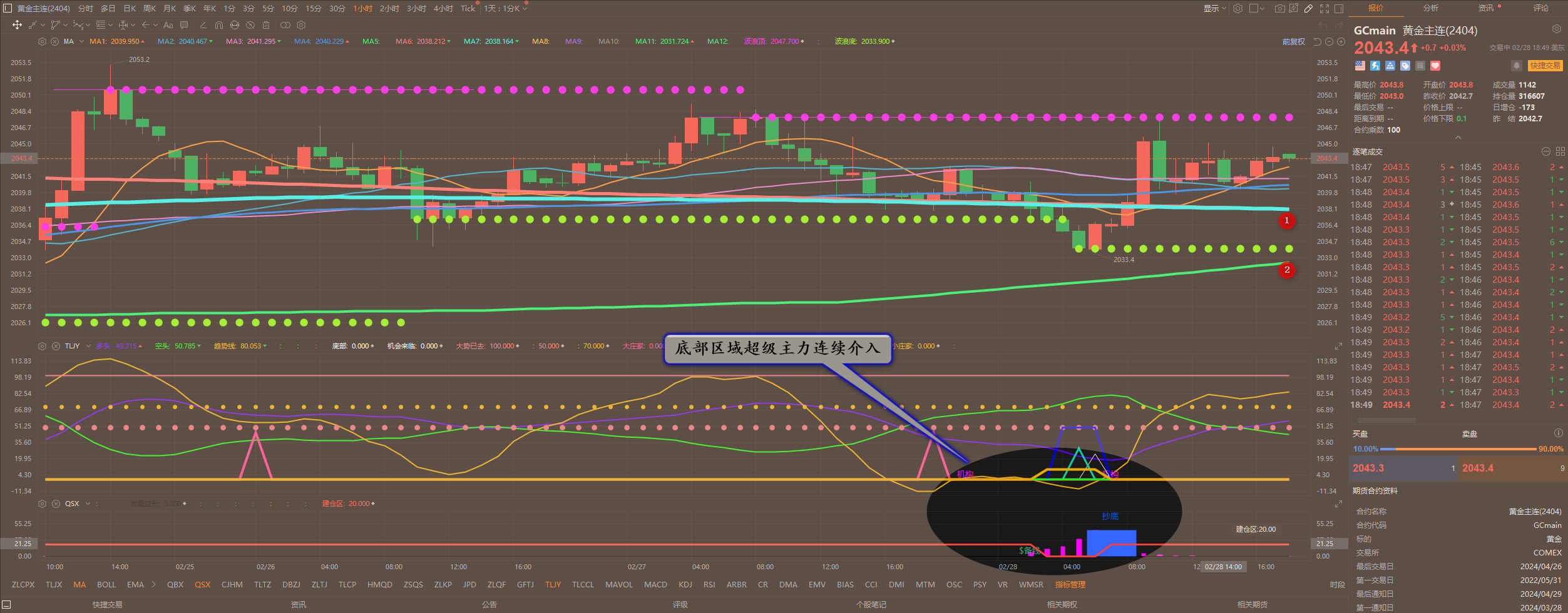 通过对黄金小时图解析得知,昨日行情再次如期在下方2025一线止跌反弹上涨,晚间再次到达上方2038一线受阻回落整体形成窄幅震荡调整运行动作,我们从下方的附图可以清楚的看到多头主力在下方2029和2025一线连续两次抄底介入从而导致行情的再次雄起,到我们继续重点关注下方12号均线的支撑,经过连续几个交易日的震荡调整,多头主力蓄势待发为进一步上涨依据做好充分的准备,短期在操作上我们继续高空低多思路重点逢低做多,具体建议如下: