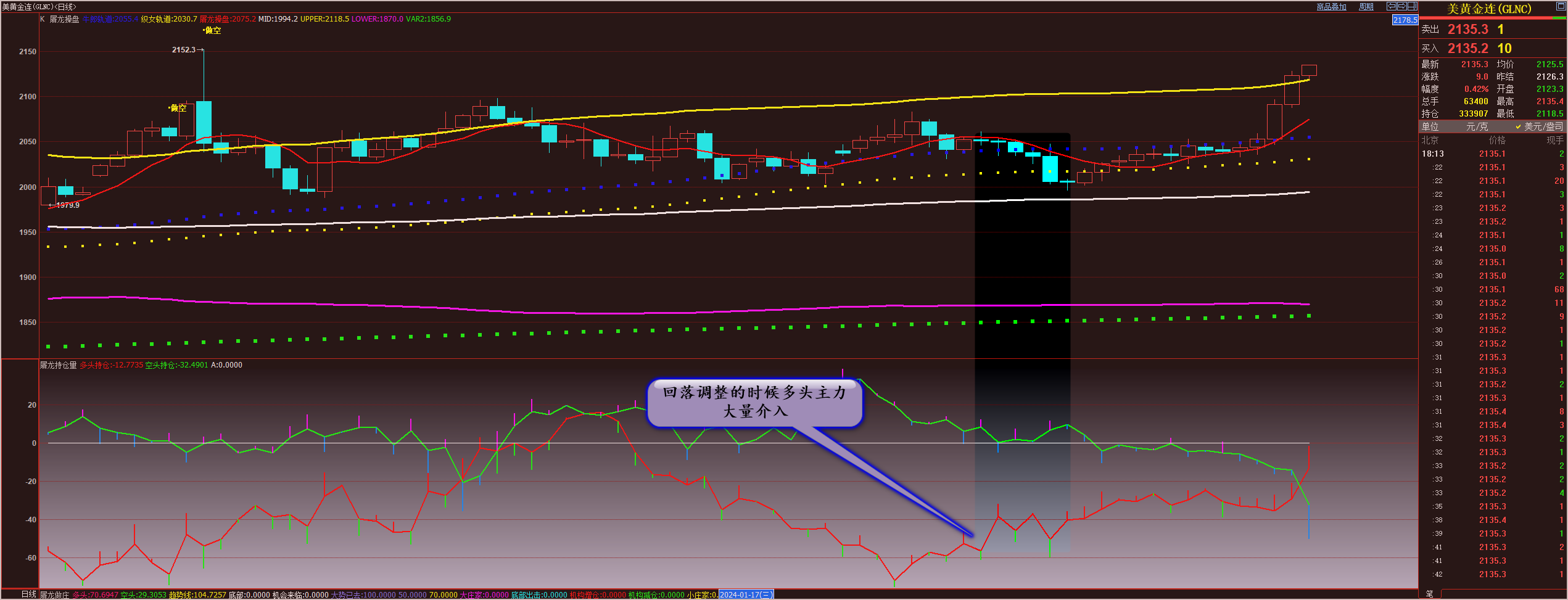 通过对黄金日线解析得知,黄金从早盘回落调整一下到达2110一线止跌反弹继续延续上涨行情,我们从下方的附图中可以清楚的看到,在前期从2065回调到1984一线的过程中,我们可以清楚的看到多头主力在下跌的过程中不断地增仓介入从而导致近期的行情不断地突破创新高,也是我们常说的地冻三日非一日之寒,主力在上涨或者下跌之前都会有布局动作,短期行情下一个目标位2144我们重点关注一下,相对而言回落调整一下属于正常情况,短期在操作上我们继续重点逢低做多思路不变,具体建议如下