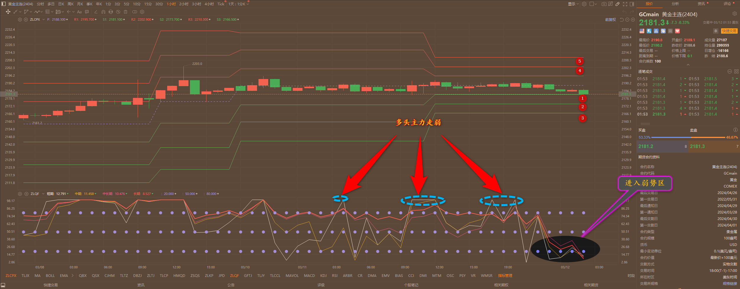 通过对黄金小时图解析得知,黄金从早盘到目前为止再次冲高回落目前已经到达下方1号支撑位(2174一线),我们从下方的附图可以清楚地看到,昨日晚间反弹到2186一线已经没有力道正如我们早盘所说空头主力在酝酿行情,短期有筑顶的迹象(突发事件除外),短期上方45号位置依然是压力(2188和2195),短期下方123号支撑我们重点关注一下一旦下方3号(2165)支撑被放量跌破将会加速向下运行,说明多头趋势已经被破坏,在操作上我们就要重点逢高做空了,短期我们敬请关注行情盘中变化,具体建议暂且参考早盘建议