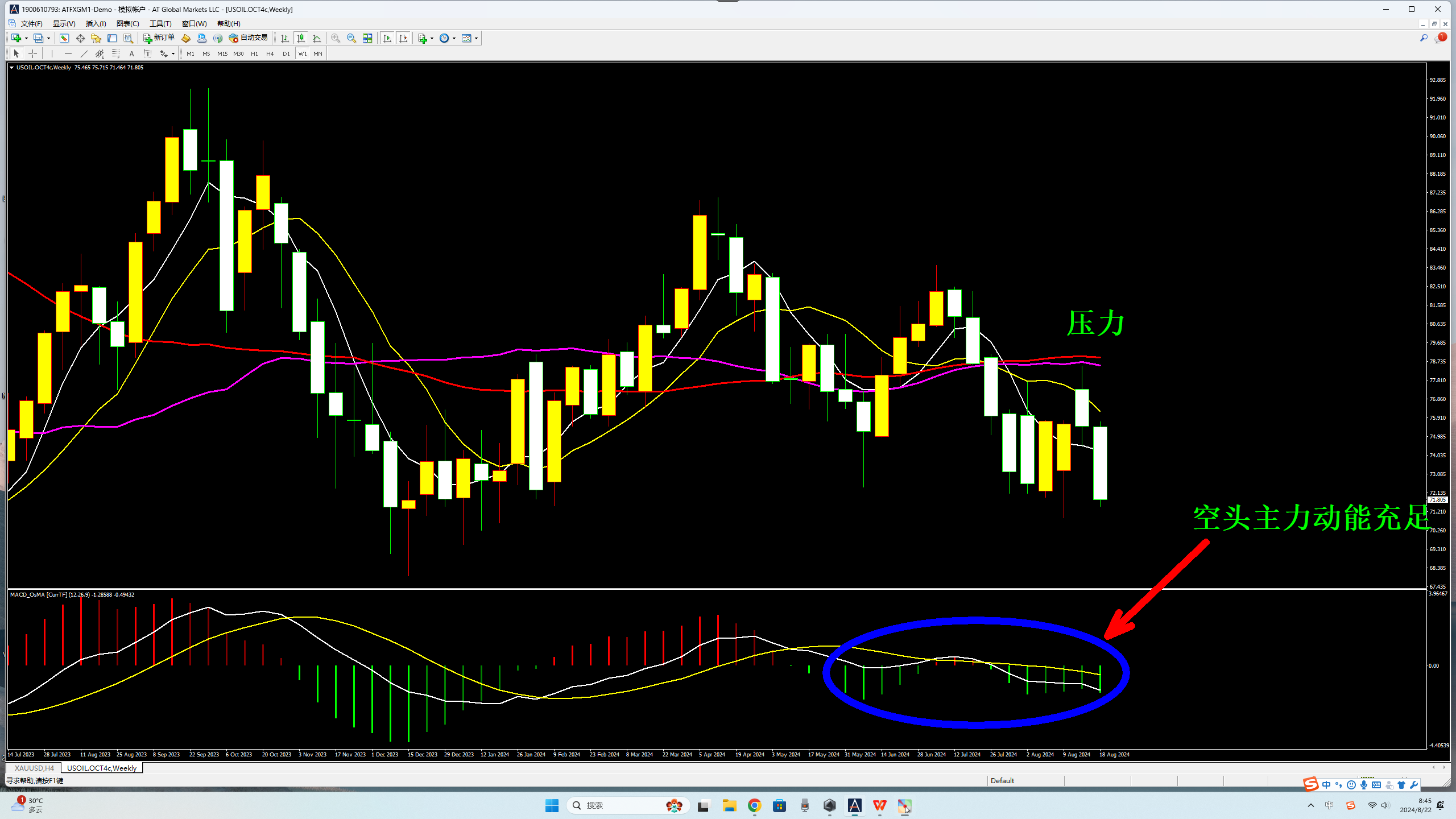 通过对原油周线图解析得知,昨日行情如期冲高回落继续向下方71.00一线前进,自从上周反弹到是否30日均线的压力位附近反弹无力继续回归下跌走势,前期就已经多次说过短期的反弹属于超跌反弹动作不属于反转,并且高位一直是顶底下移的状态下跌趋势一直未变,短期在操作上我们继续高空低多思路重点逢高做空,具体建议敬请关注老师的微信公众号: