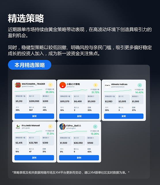 本月跟单市场延续「黄金策略领跑、风险分层配置」的趋势。