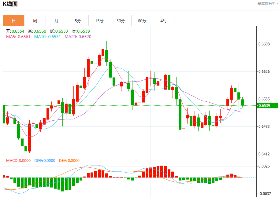 主要支撑位在0.6544的九日均线。跌破该水平将削弱中短期价格动能,并促使澳元/美元在矩形下边界0.6450附近徘徊,随后是四个月低点0.6414