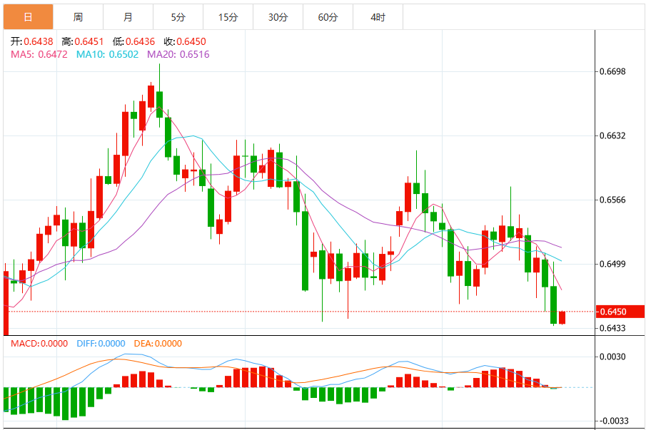 上行方面,主要障碍位于九日EMA0.6481,其次是心理层面0.6500。若跌破该水平,短期价格动能将提升,使货币对接近矩形上线0.6620附近。