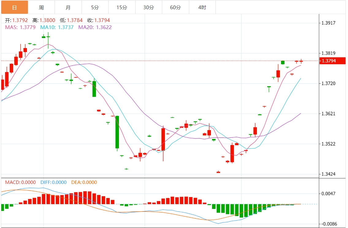 在另一种情况下,如果下行跌破9月19日高点1.3650附近,将面临5月16日低点1.3600附近支持,随后是9月13日高点1.3538。