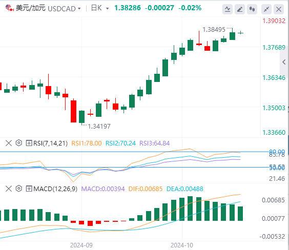 美元/加元成功触及1.3838美元水平并试图突破该水平,以支持继续主导看涨趋势的机会,并朝着达到1.3900美元的额外收益迈进。