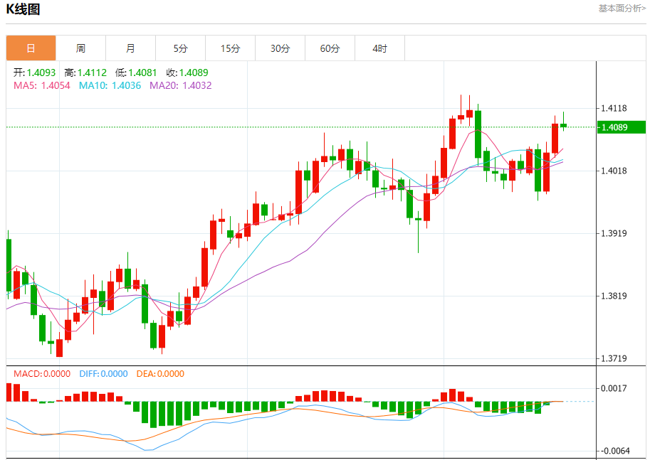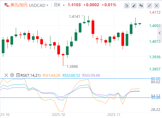 美元/加元汇率可能测试11月5日达到的七个月高点1.4140,随后是关键水平0.4150。若进一步突破该水平,将使货币对测试上升通道的上界1.4210。