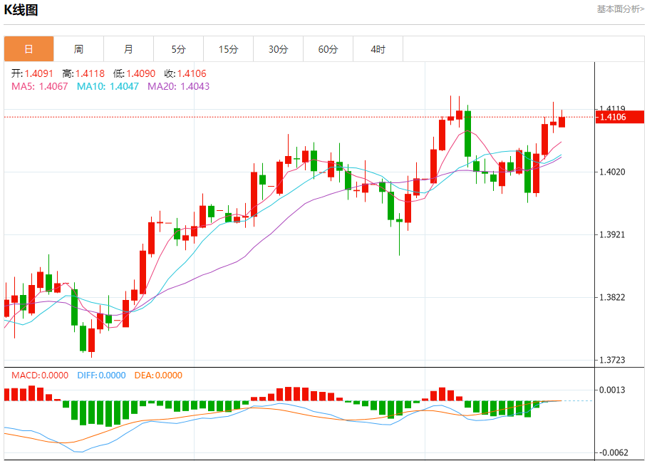 下行方面,初始支撑位于九日均线平均线1.4062。若跌破该水平,将削弱短期价格动能,促使USD/CAD对测试上升通道的下限,约1.4000心理水平,随后触及50日均线1.3982。