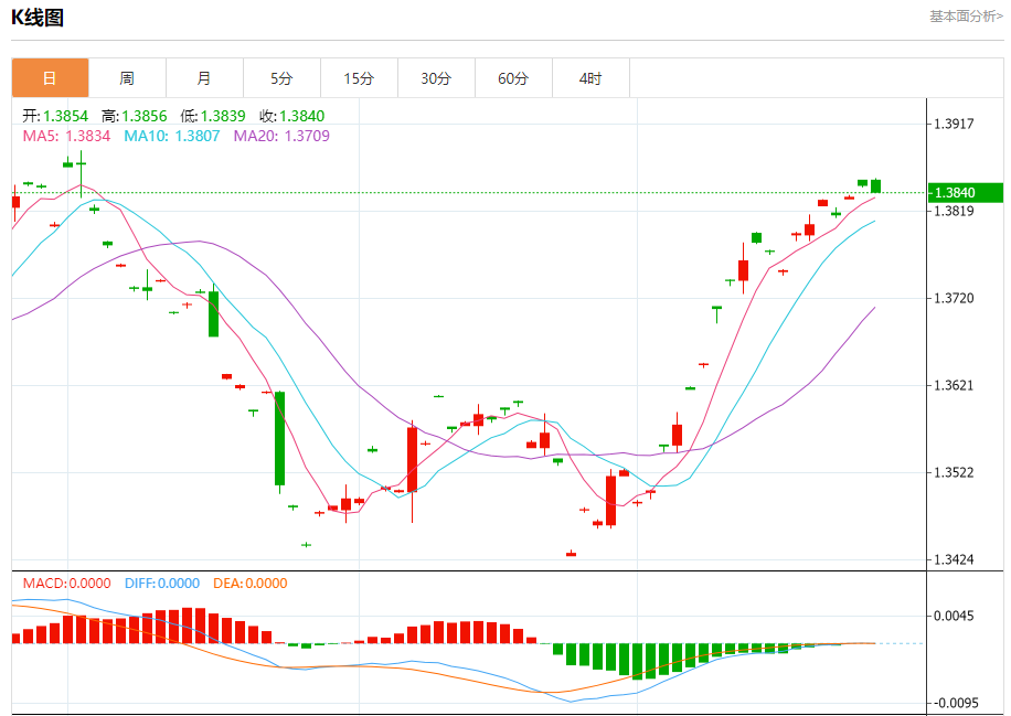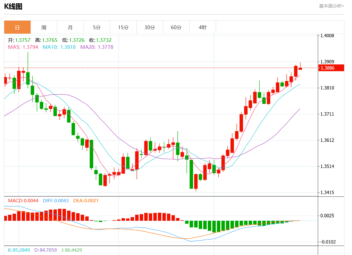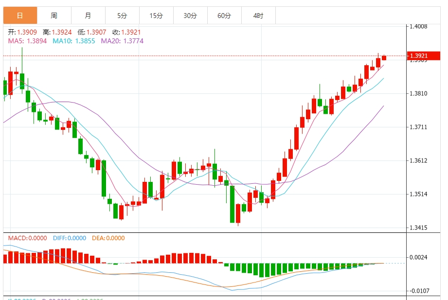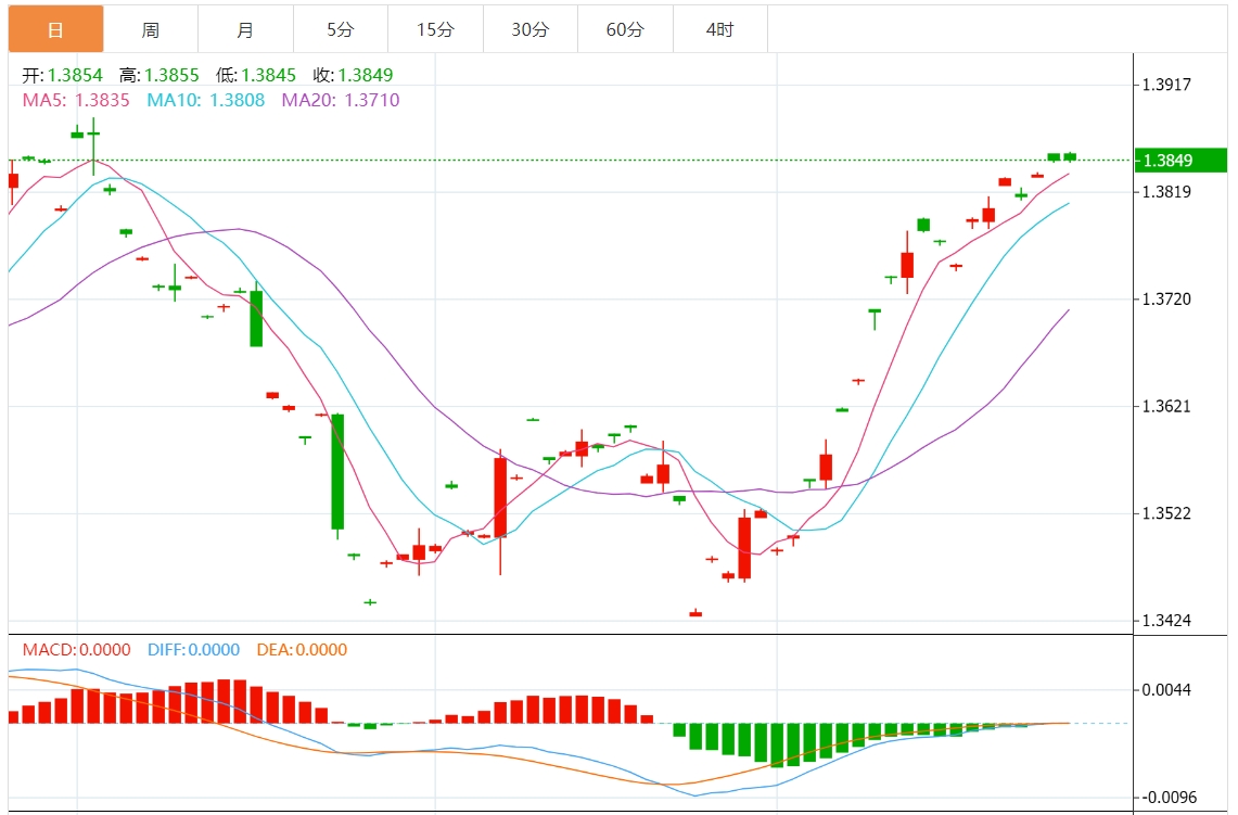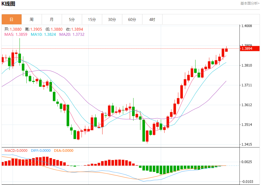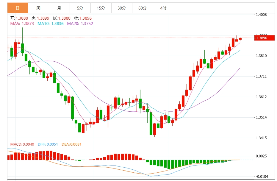 美元兑加元今日汇率最高1.3899,最低1.3880,涨跌0.0007,涨跌幅0.05%。 市场基本面分析 外汇分析师atricioartin撰文称,由于对美元的积极情绪盛行,周一美元兑加元持续走高,一度升至11月11日以来的最高水平1.3907。美元走强受到美联储可能不会选择激进宽松政策的预期支撑。与此同时,由于对经济增长的担