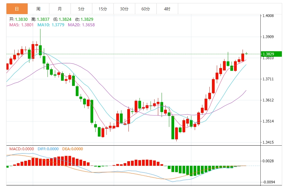 美元兑加元今日汇率最高1.3837,最低1.3824,涨跌-0.0001,涨跌幅-0.01%。 市场基本面分析 道明经济学家Rihiondhi预测,加拿大央行10月23日料降息25个基点,但也有可能降息50个基点。加拿大丰业银行首席外汇策略师haunOborn预测,加元看起来很疲软,很容易遭受更多下跌。 美元兑加元走势预测
