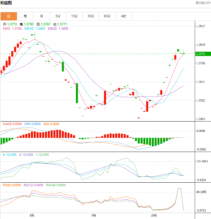 美元/加元基本面综述: 路透调查的29位经济学家中有19位预计加拿大央行将在10月23日将降息50个基点至3.75%,另有10位经济学家预测降息25个基点。 29位经济学家中有10位预计加拿大央行将在2024年底前将利率下调至3.50%,9位预计为3.75%,9位预计为3.25%,1位预计为4.00%。 美元/加元技术面分析: