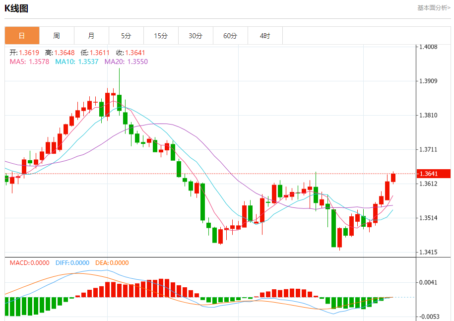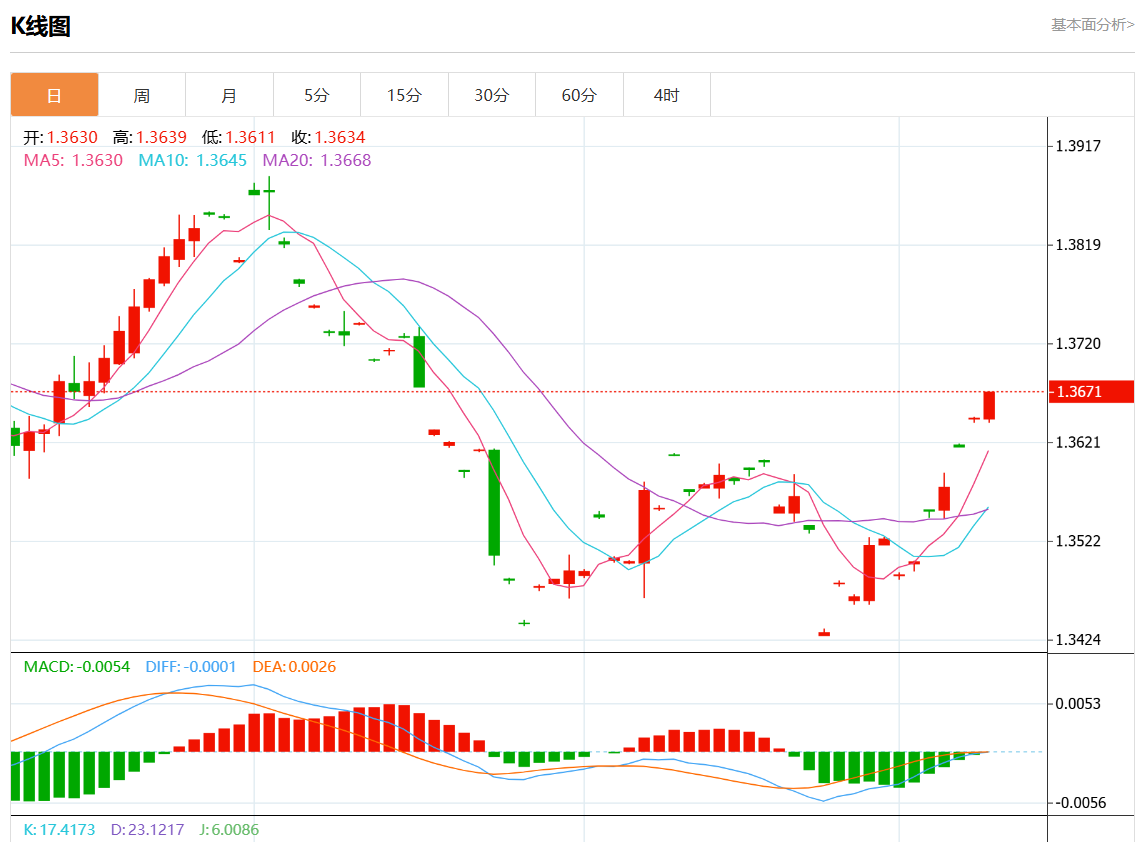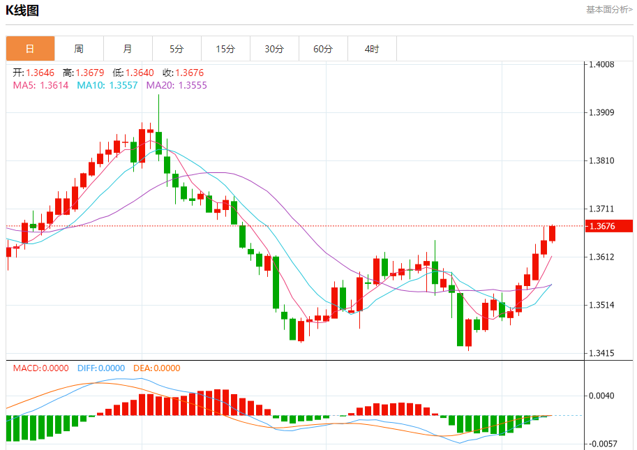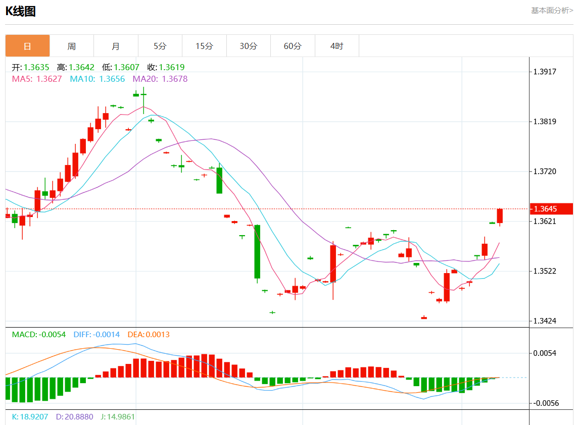 美元兑加元今日汇率最高1.3789,最低1.3751,涨跌0.0014,涨跌幅0.10%。 市场基本面分析 加拿大9月份经济增加的就业机会超出预期,降低了加拿大央行10月会议大幅降息的可能性,加元正在攀升。北京时间10月23日21:45,加拿大央行将举行利率决议。本周公布的通胀数据可能有助于解决加拿大经济学家之间降息25