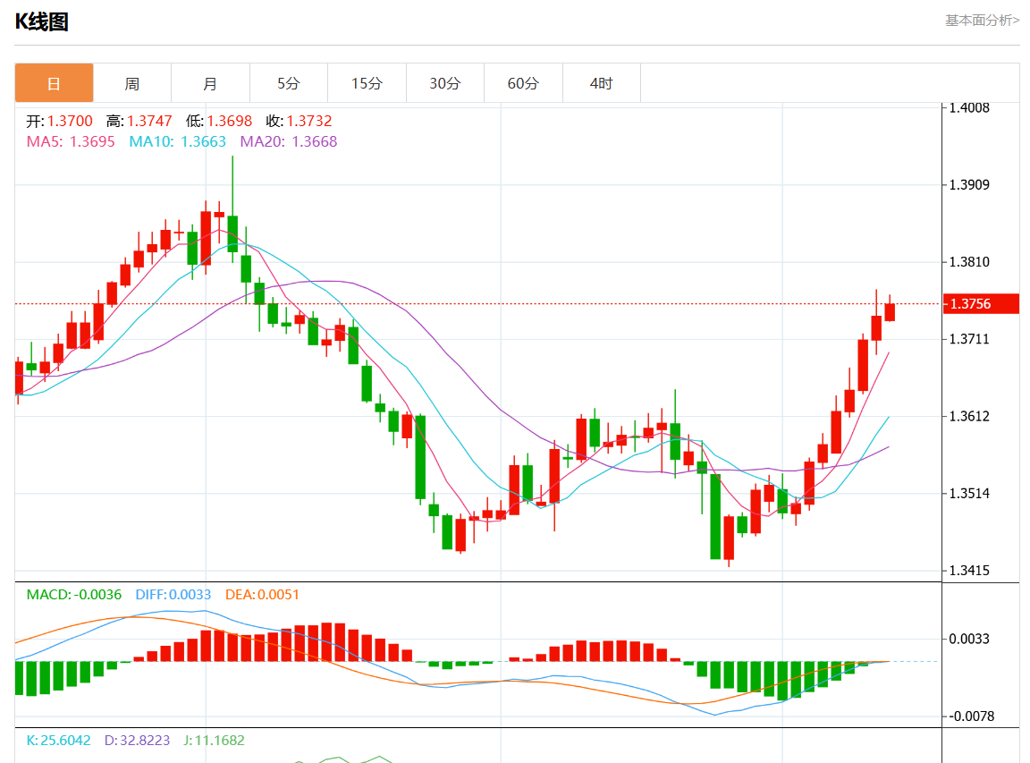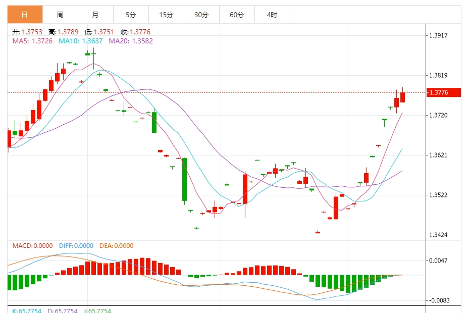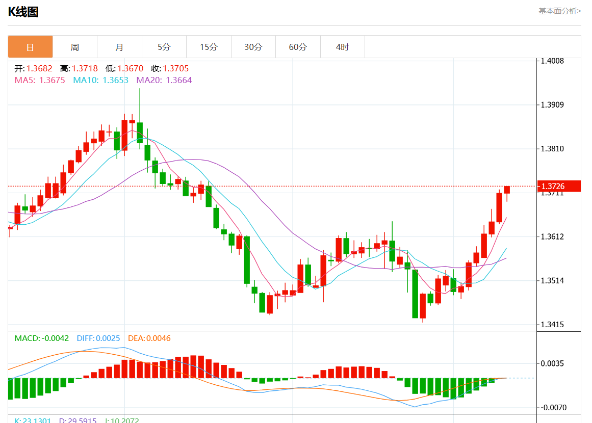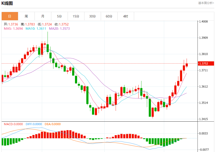 美元兑加元今日汇率最高1.3789,最低1.3751,涨跌0.0014,涨跌幅0.10%。 市场基本面分析 加拿大9月份经济增加的就业机会超出预期,降低了加拿大央行10月会议大幅降息的可能性,加元正在攀升。北京时间10月23日21:45,加拿大央行将举行利率决议。本周公布的通胀数据可能有助于解决加拿大经济学家之间降息25