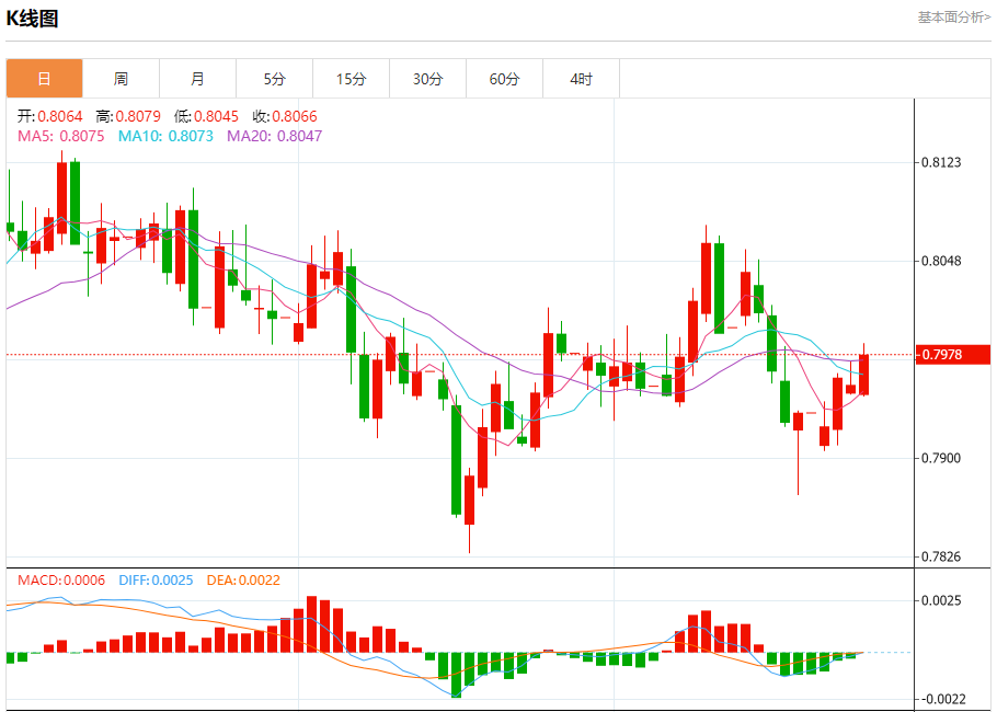 周四纽盘,瑞郎兑美元交投于0.7979,涨幅为0.29%。
