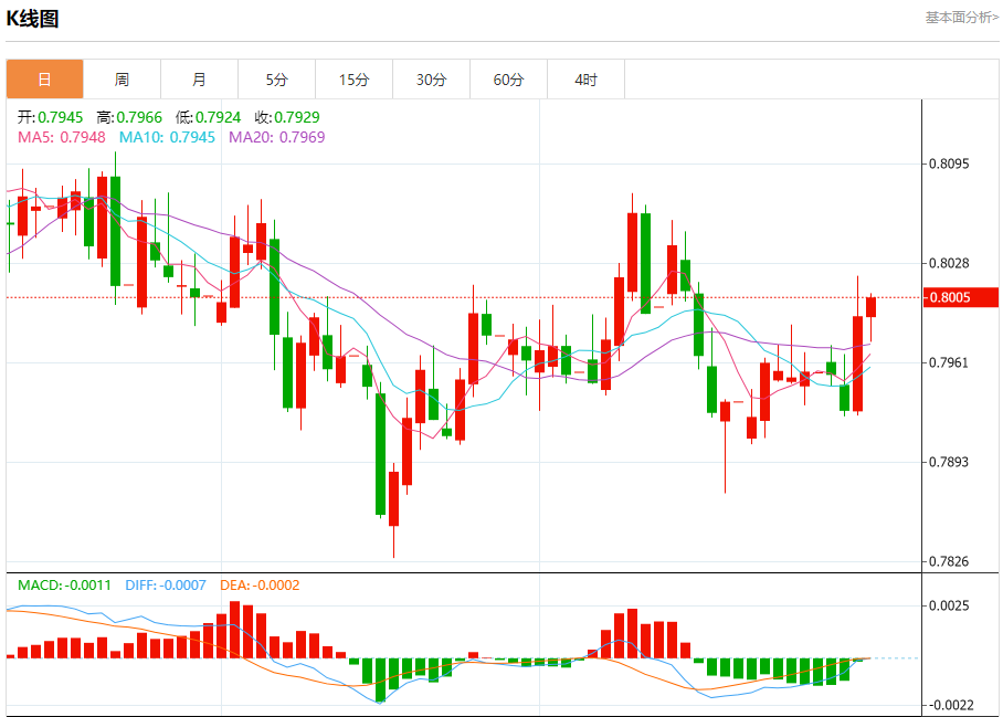 周四纽盘,瑞郎兑美元交投于0.8007,涨幅为0.17%。