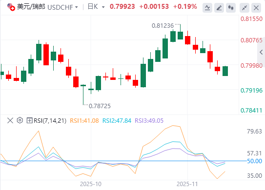 美元/瑞郎的第一个支撑位位于0.7946,即10月6日的低点。任何低于该水平的后续抛售都可能导致跌至0.7909,即9月23日的低点。持续低于上述水平的交易可能会暴露布林带的下限0.7890。