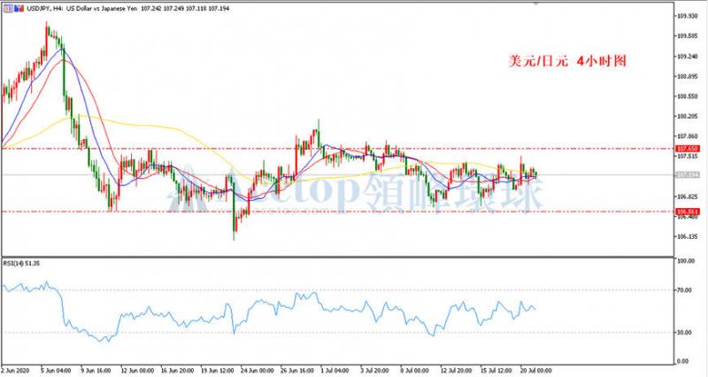 美日自6月中旬至今,均处于区间震荡之中,行情走势相对简单,只要投资者围绕着107.65至106.55区间来回操作,均是盈利的。