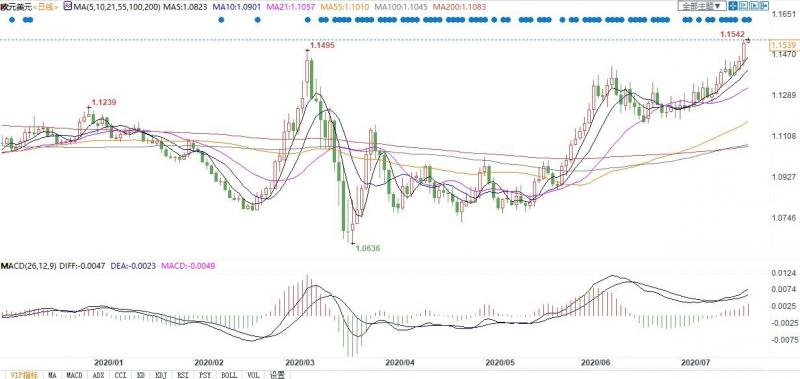 北京时间7月22日11:04,欧元兑美元报1.1544/46。