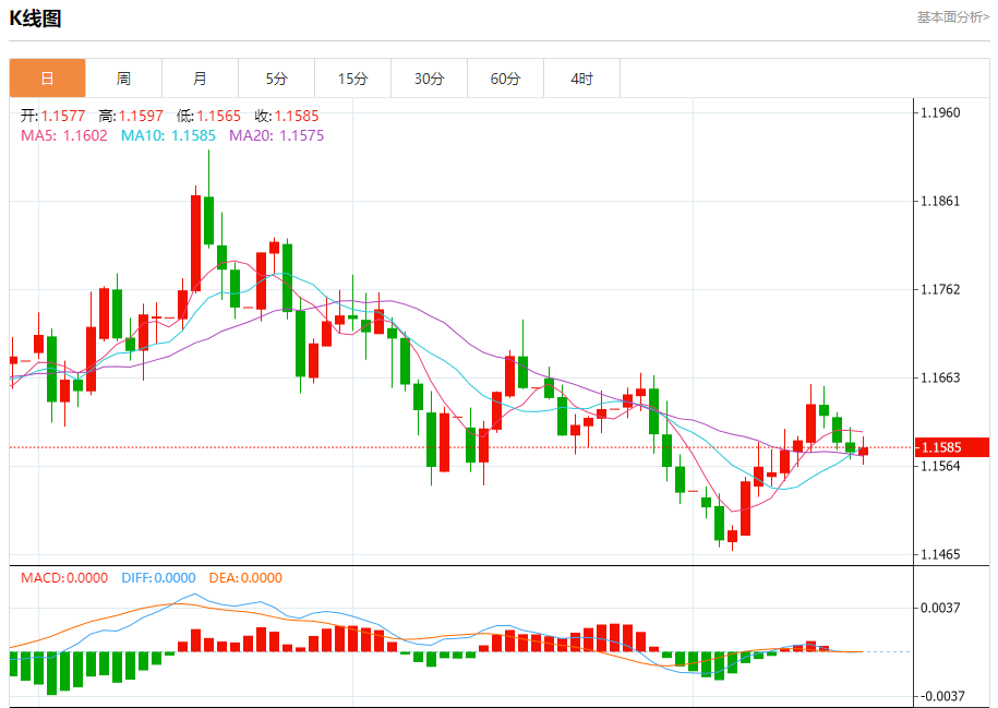 今日周三,截止目前欧元兑美元报1.1586,上涨0.03%。