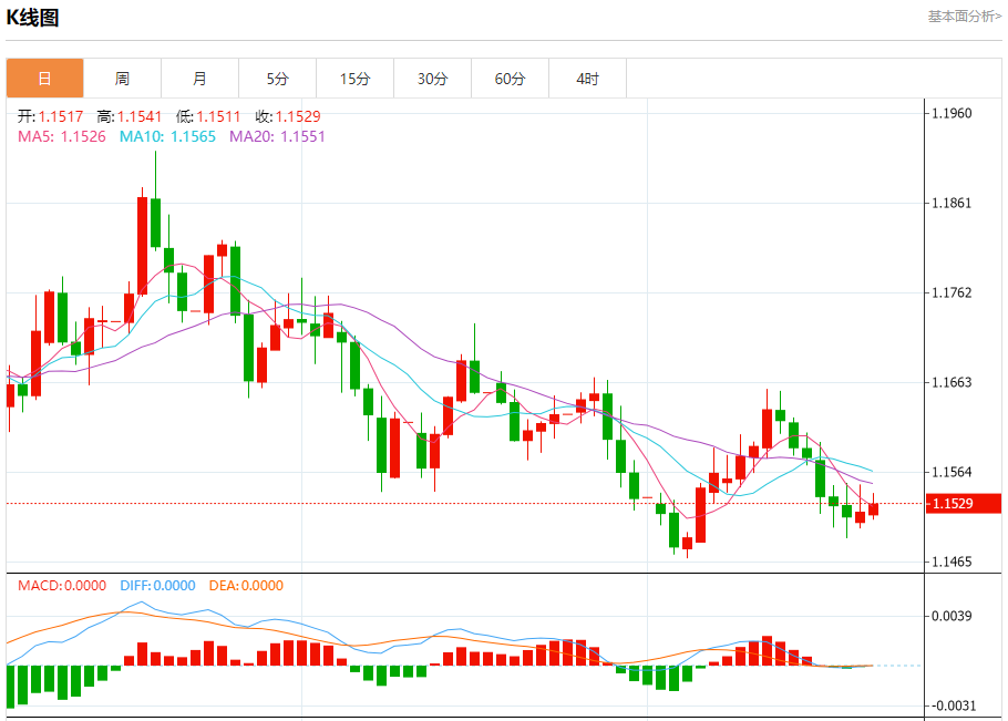今日周二,截止目前欧元兑美元报1.1528,上涨0.06%。
