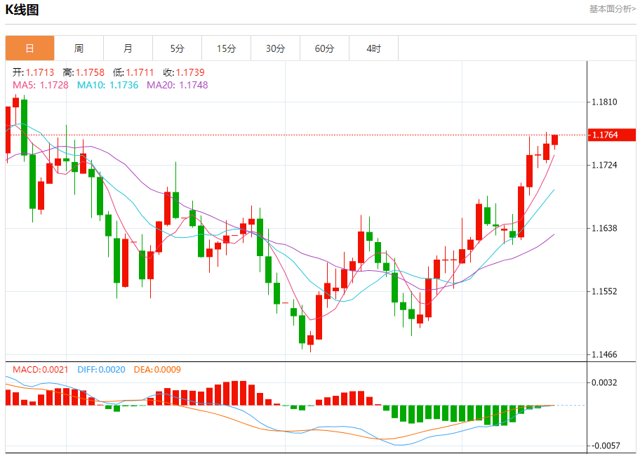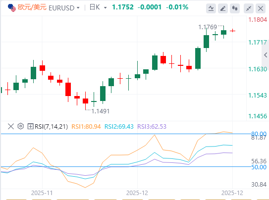 欧元/美元的技术布局显示为中性至多头偏向,如果该货币对能收盘于1.1700以上,这一趋势将被进一步强化。动量指标支持这一观点,相对强弱指数(RSI)走高,显示买盘兴趣增强。