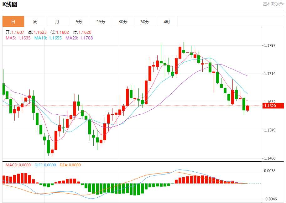 今日周四,截止目前欧元兑美元报1.1635,下跌0.09%。