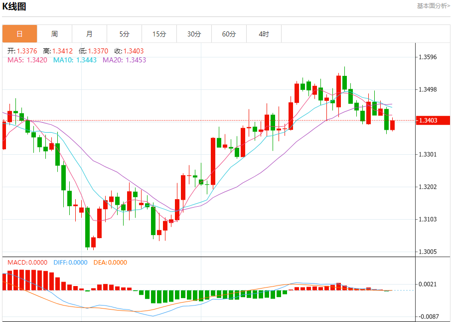 周四欧市盘中,英镑兑美元交投于1.3417,跌幅为0.18%。