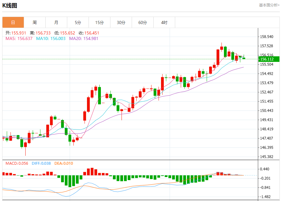 进一步观察可见,当前美元/日元正处于窄幅整理的三角形区间内,这一技术形态的形成预示着市场正在酝酿新的方向性突破,该区间由以下两条关键趋势线构成:下边界——将上升通道下半部分分为两部分的这条线,目前该位置在156.000-156.100区间形成有效支撑,多次阻止汇价进一步下行;上边界——通过上周以来形成的一系列低点连接而成的下降趋势线,当前该阻力位在156.500-156.600区间,对汇价的反弹构成明显压制。