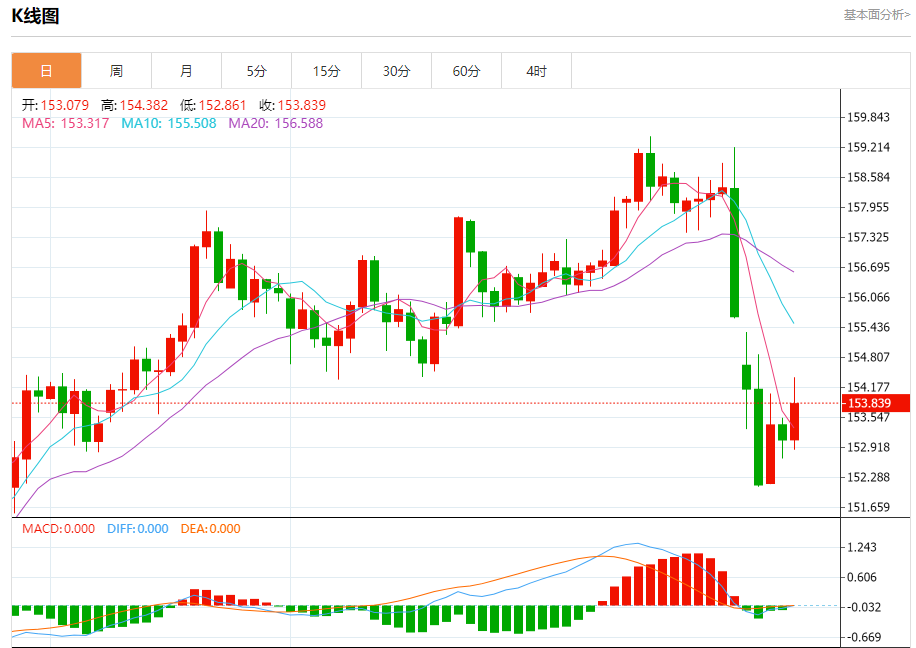 今日周四,截止目前美元兑日元报153.412,上涨0.01%。