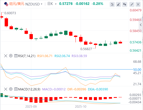 10月21日,周二欧市初盘,纽元/美元下跌0.27%至0.5725附近。由于投资者越来越接受新西兰储备银行(RBNZ)将进一步放松货币政策以支持通胀下行风险,纽元(NZD)全面表现不佳,纽元面临抛售压力。