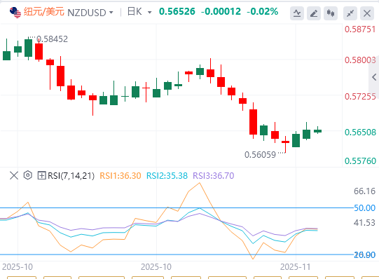 因此,在通往0.5600附近的0.5625中间支撑位(即上周五触及的4月以来的最低水平)的后续疲软似乎是一种明显的可能性。如果跌破后者,将标志着新的跌破,并使新西兰元/美元货币对容易加速下跌至0.5500左右,然后最终跌至4月低点——略低于0.5500心理关口的水平。