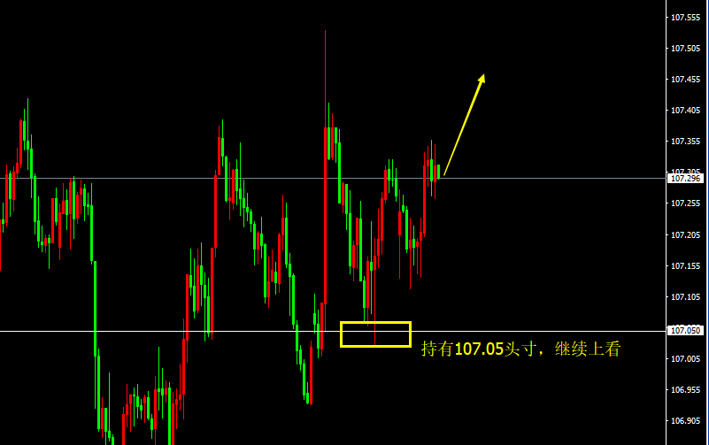 持有107.05多单头寸,止损放置在进场位,目标看向107.35、107.55、107.75。