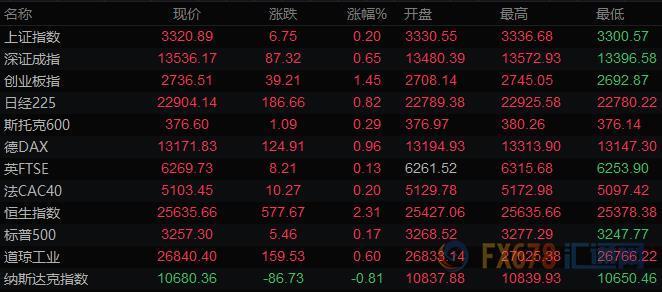 全球主要市场行情一览
