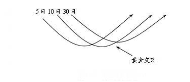 黄金交叉是指原本呈现空头排列之短、中、长期平均线,长天期的技术平均线下降趋势逐渐变缓,而短天期的技术平均线自底部翻升升上突破中、长期平均线,带动中、长期平均线同步翻转向上的情况。这代表股价下跌趋势已经停止,一波股价续涨可能性高,为买信号。这代表股价下跌趋势已经停止,一波股价续涨可能性高,为买进信