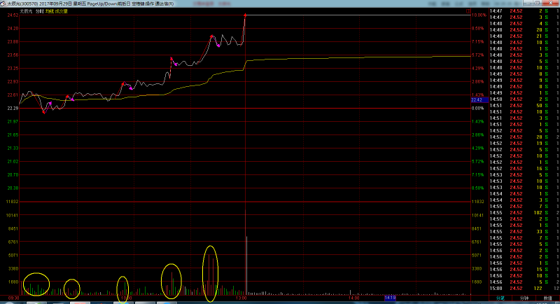 我们来看两个分时例子,来解决T+1的操盘思路:300570 太辰光