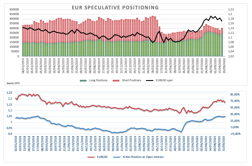以下是截止9月22日当周CFTC头寸报告的主要内容: 欧元净多头攀升至三周新高,和现货市场的表现明显不同,受第二波新冠病毒以及欧央行鸽派讲话影响,欧元承压,其汇率水平是争论的焦点。 英镑的净多头升至两周高点,因为欧盟与英国的贸易谈判(预计将于本周恢复)似乎出现了一线曙光。英国央行的鸽派立场预计将暂时限制英