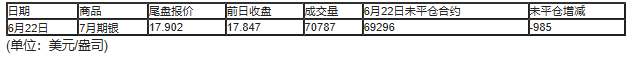 截至北京时间04:59,6月22日纽约商品交易所(COX)2020年7月期银成交量为70787,6月22日未平仓合约减少985手。