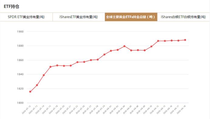 截至2020年6月18日,全球8大黄金TF持仓总量为1888.186吨,与上一交易日增加0.83吨。
