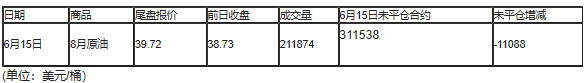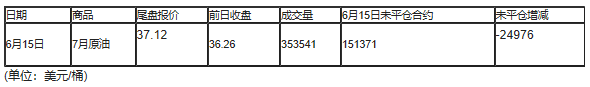 截至北京时间04:59,6月15日纽约交易所(NYX)2020年7月期原油成交量为353541,6月15日未平仓合约减少24976手。