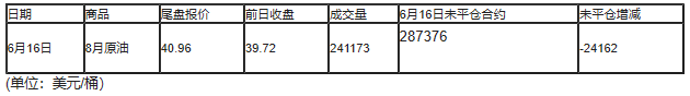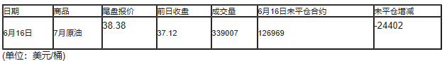 截至北京时间04:59,6月16日纽约交易所(NYX)2020年7月期原油成交量为339007,6月16日未平仓合约减少24402手。