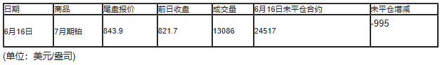 截至北京时间04:59,6月16日纽约商品交易所(NYX)2020年8月期铂成交量为13086,6月16日未平仓合约减少995手。