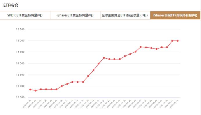 ihar白银TF6月15日白银持有量为14991.32吨,与上一交易日持平。