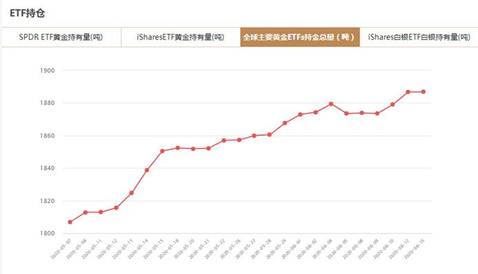 根据黄金信息网站对全球8大主要黄金TF的监控数据显示,截至2020年6月15日,全球8大黄金TF持仓总量为1886.846吨,与上一交易日持平。