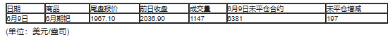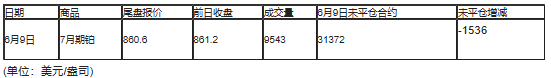 截至北京时间04:59,6月9日纽约商品交易所(NYX)2020年8月期铂成交量为9543,6月9日未平仓合约减少1536手。
