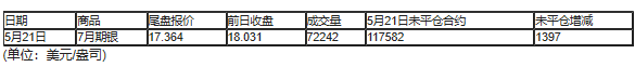 截至北京时间04:59,5月21日纽约商品交易所(COX)2020年7月期银成交量为72242,5月21日未平仓合约增加1397手。