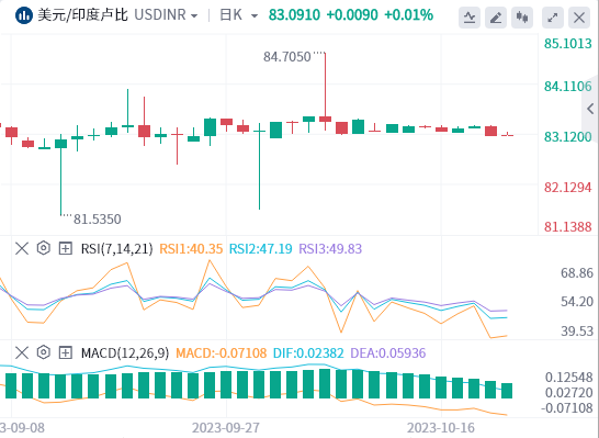 印度卢比兑美元本周保持坚挺。美元/印度卢比对在83.15-83.30的窄幅区间内交易,并在83.00心理轮大关上方找到支撑。任何低于后者的后续抛售都可能降至82.82(9月12日的低点)。另一方面,10月12日83.40的高点是这对组合的直接阻力位。下一个值得关注的障碍是83.45左右的历史最高点,其次是84.00的心理数字。美元/印度卢比对在日图上保持在100天和200天指数移动平均线(EMA)上方,这暗示着进一步的上行看起来是有利的。