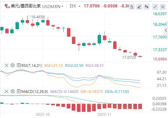 此外,墨西哥银行(Banxico)将公布其最新会议记录,在会议记录中,将利率维持在当前水平的决定伴随着措辞从“长期”转变为“一段时间”。掉期市场显示,2024年上半年将下调50个基点。
