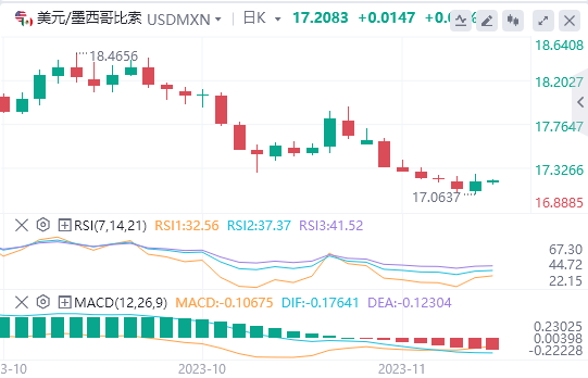 此外,路透社援引的初步估计显示,墨西哥10月经济增长年率为2.9%。